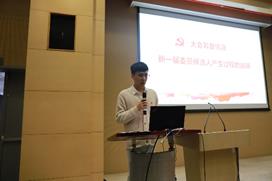 图:王芳代表上一届学生党总支做工作报告 图:米震作大会筹备情况和新一届委员会候选人产生说明
