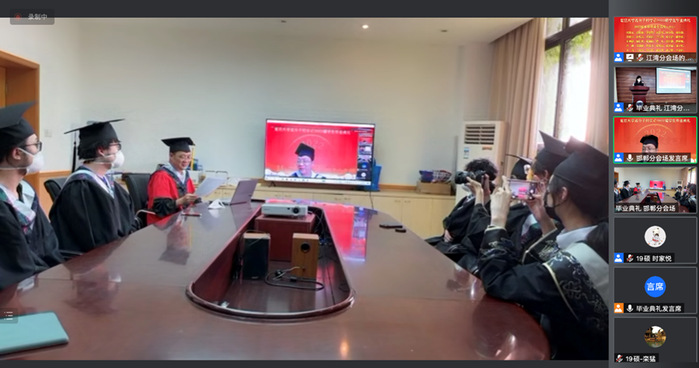 毕业生导师和辅导员们通过录制的视频为同学们送上寄语和祝福,本科毕业生“我心目中的好老师获得者”何军坡老师,寄语毕业生“以一分子推动世界”,老师们共同希望同学们在未来能够继续努力开拓,祝同学们毕业快乐,前程似锦。