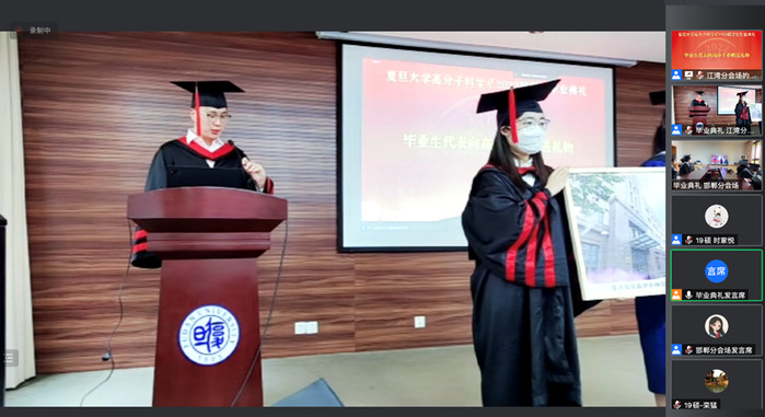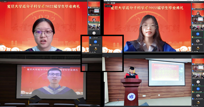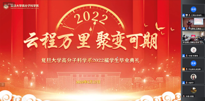 2022年6月17日下午,肉漫画 举行2022届学生毕业典礼。由于疫情影响,本届毕业典礼在江湾校区高分子楼主会场、邯郸校区跃进楼分会场及腾讯会议线上会场同步开展。肉漫画 党政领导、导师代表及全体毕业生参加此次毕业典礼。典礼由系党委副书记王芳主持。