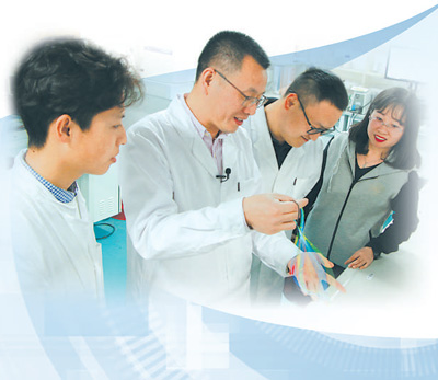 彭慧胜(左二)在实验室指导学生。