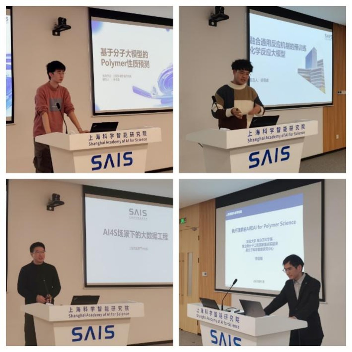 在之后的学术交流环节中,丁建东教授,安俊逸研究员,徐丽成研究员,王先胜工程师,李剑锋教授分别以“Multiscale Study of Ring-opening Polymerization with Ester Exchange”“基于分子大模型的Polymer材料设计”“融合通用反应机制的预训练化学反应大模型”“AI4S场景下的大数据工程”和“我所理解的AI & AI for Polymers”为题作了分享。这些报告不仅呈现了聚合物在智能技术赋能下的新动态,也为现场的科研人员提供了广阔的合作灵感。