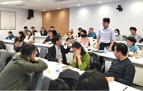 此次交流活动的主持人为孟晋宇副院长和刘顺厚书记。会议伊始,丁建东教授以“聚合物分子工程国家重点实验室总体介绍”拉开了学术交流的序幕。丁老师首先以聚合物及聚合物分子工程的概念为引入点,围绕实验室建设目标、学科布局与国家重大需求,系统阐述了实验室主攻的四大研究方向,并介绍了现有的科研团队;最后,他还强调了高分子科学智能研究中心成立对于推动高分子材料领域智能化创新与发展的重大意义。