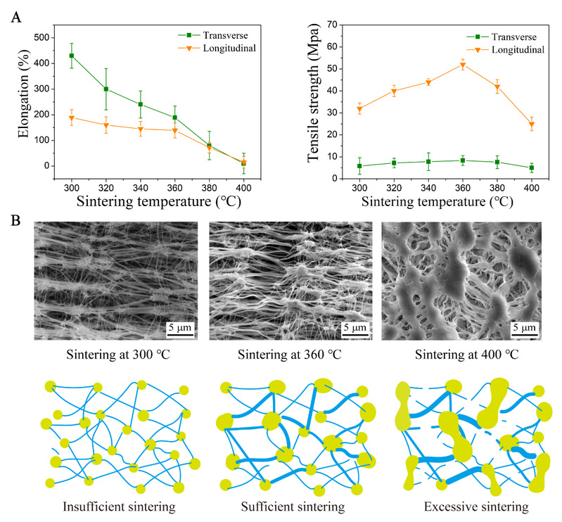 图4. 烧结温度对ePTFE膜性能的影响