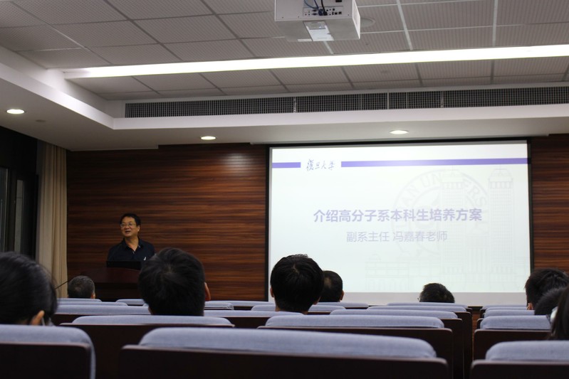 接下来,各个研究方向的导师代表带着同学们走进了神奇的高分子世界。邵正中老师从动物丝及丝蛋白基材料讲起,为同学们打开了生物高分子研究的大门;陈国颂、徐一飞老师介绍了智能高分子领域的新动向和研究特点;刘一新、冯雪岩老师介绍了高分子物理方向的理论基础和计算模拟特点;陈茂老师以“氟聚合物”为介绍了高分子化学的精准合成的奥秘;余英丰、冯嘉春老师从工程材料领域介绍了高分子材料在电子封装、大型工程中的重要应用;魏大程、卢红斌老师介绍了光电能源高分子材料与器件的前沿领域。